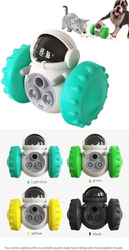 INNOVATIVE DESIGN: this dog puzzle feeder design features two different sized spheres that allow dogs to roll in a specific area, making it easy to clean up food residue after use. SAFE MATERIAL: this puzzle toy is made of high-quality food grade ABS material and does not contain any bisphenol A, PVC, or phthalates, so you can use it with confidence for your dog. This is a tough, durable, non-toxic, and safe dog treat toy.
